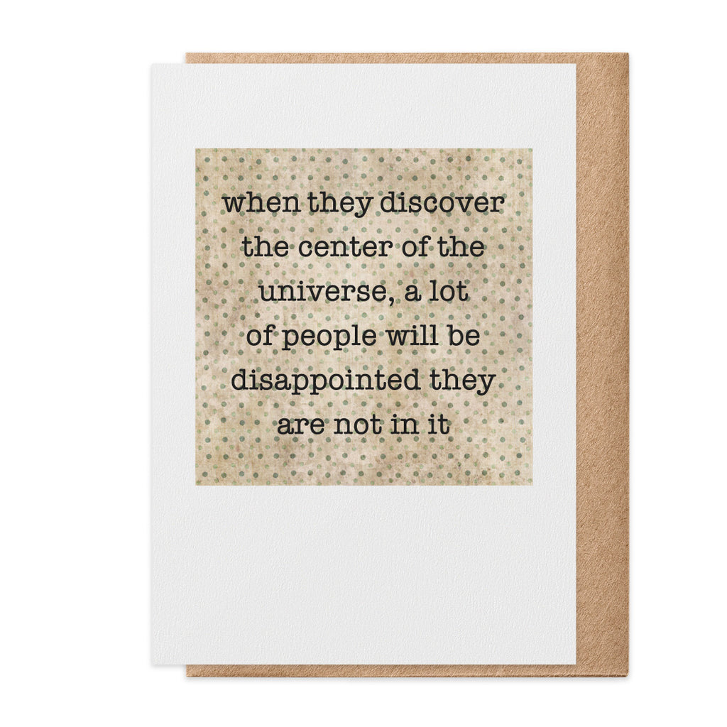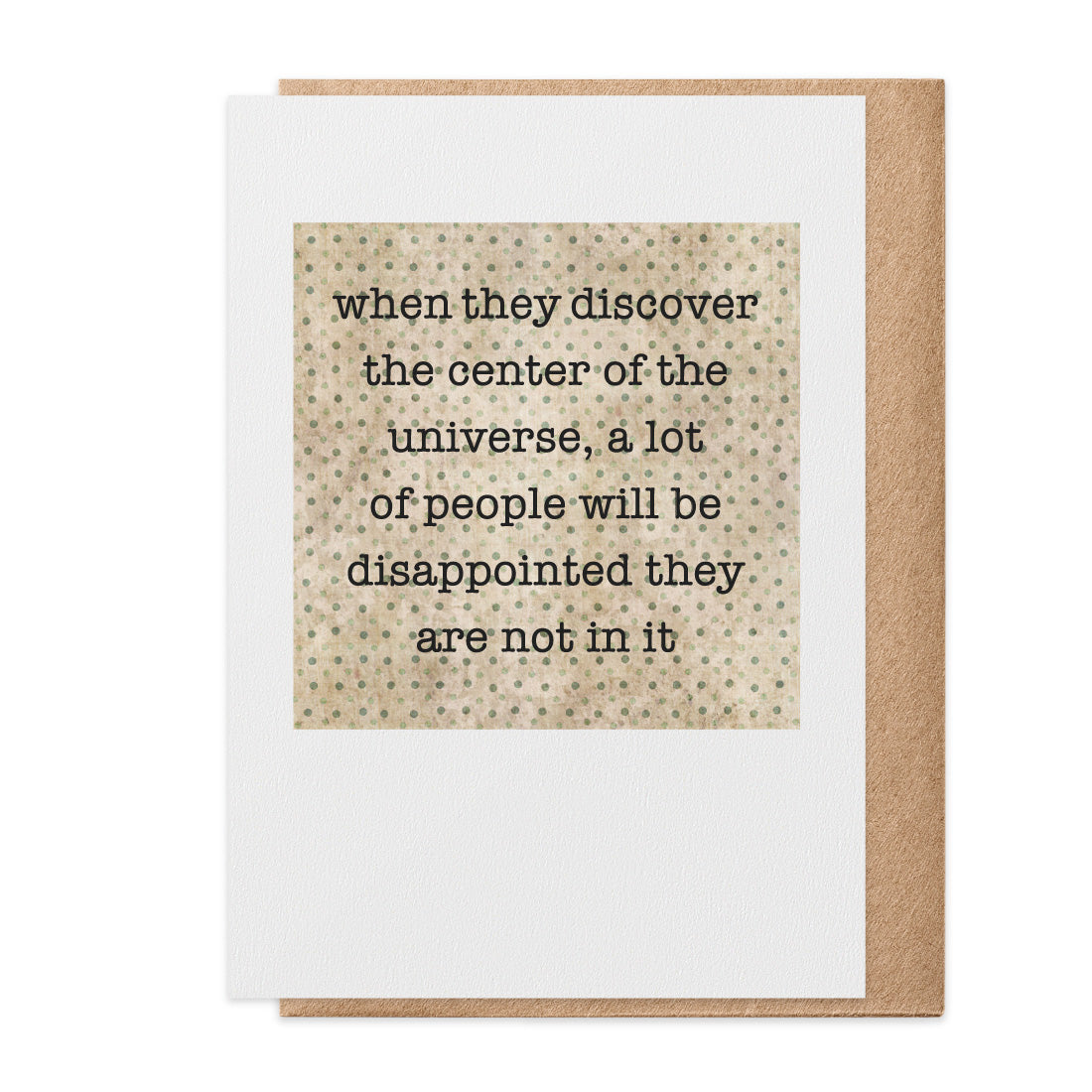 When they discover the center of the universe, a lot of people will be disappointed they are not in it.