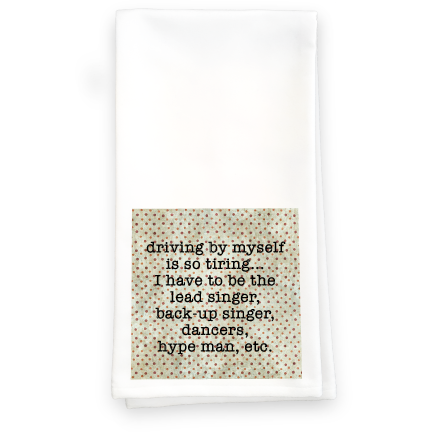 Driving by myself is so tiringÉ I have to be the lead singer, back-up singer, dancers, hype-man, etc.