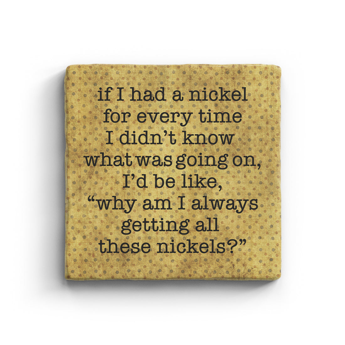 If I had a nickel for every time I didn't know what was going on, I'd be like, "why am I always getting all these nickels?"