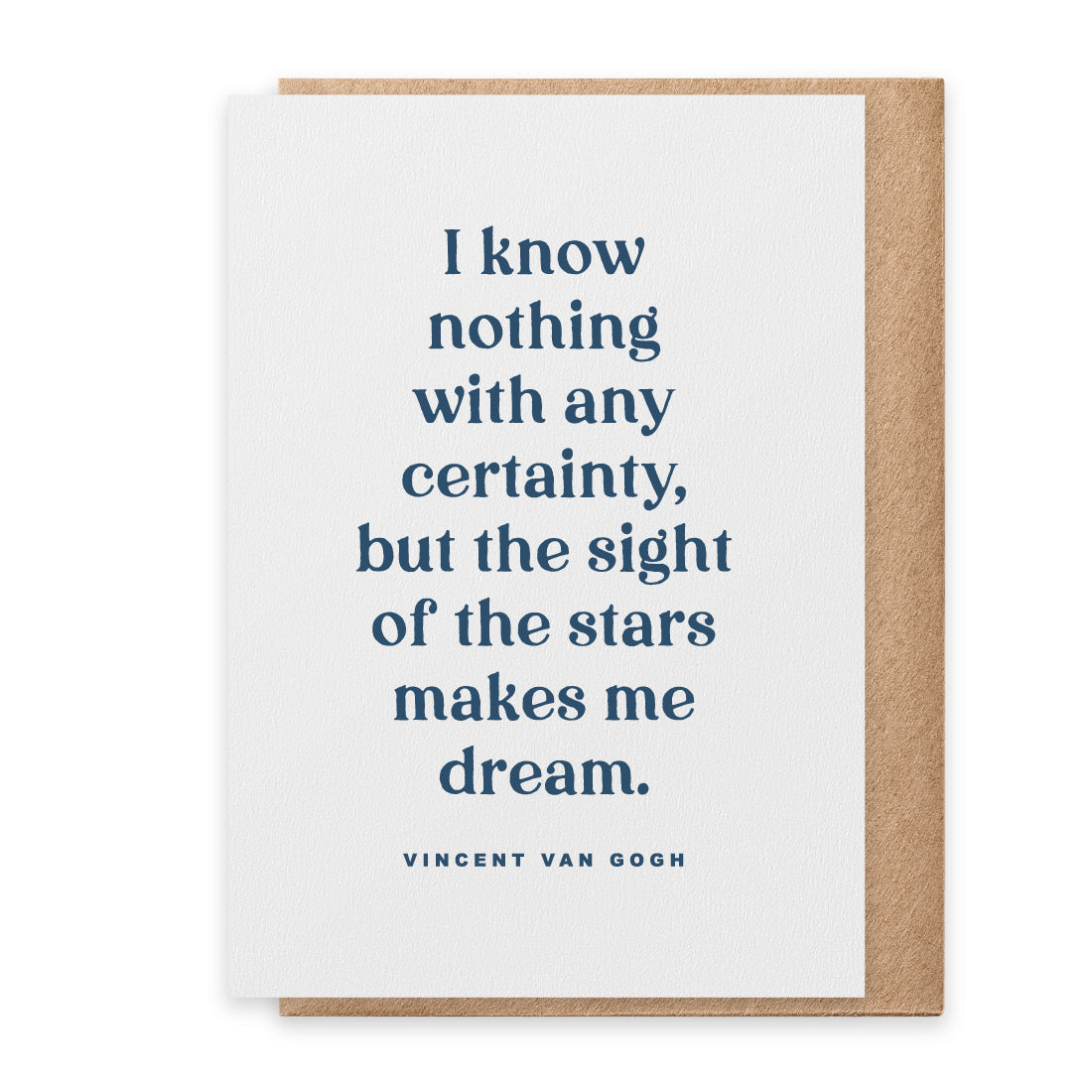 I know nothing with any certainty, but the sight of the stars makes me dream. -Vincent Van Gogh