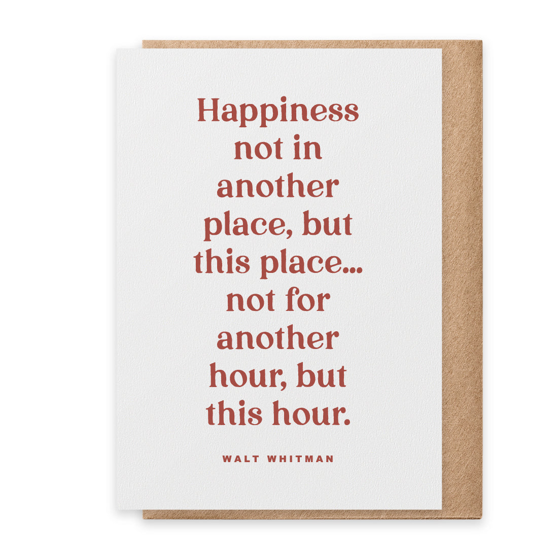 Happiness not in another place, but this place... not for another hour, but this hour. -Walt Whitman
